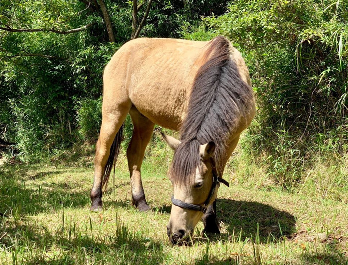 ▼平日裡Izume會到神社後面偌大的草地上散散步,吃吃草,日子過得悠然自得。