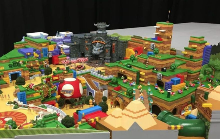 ▼從施工模型圖中可以看到,任天堂園區內會有蘑菇王國、庫巴城堡、大金剛雲霄飛車等設施。