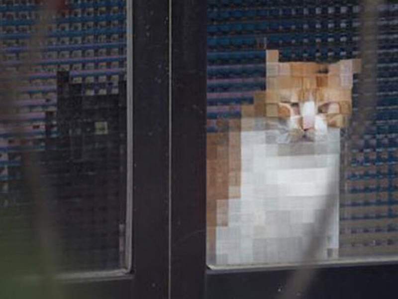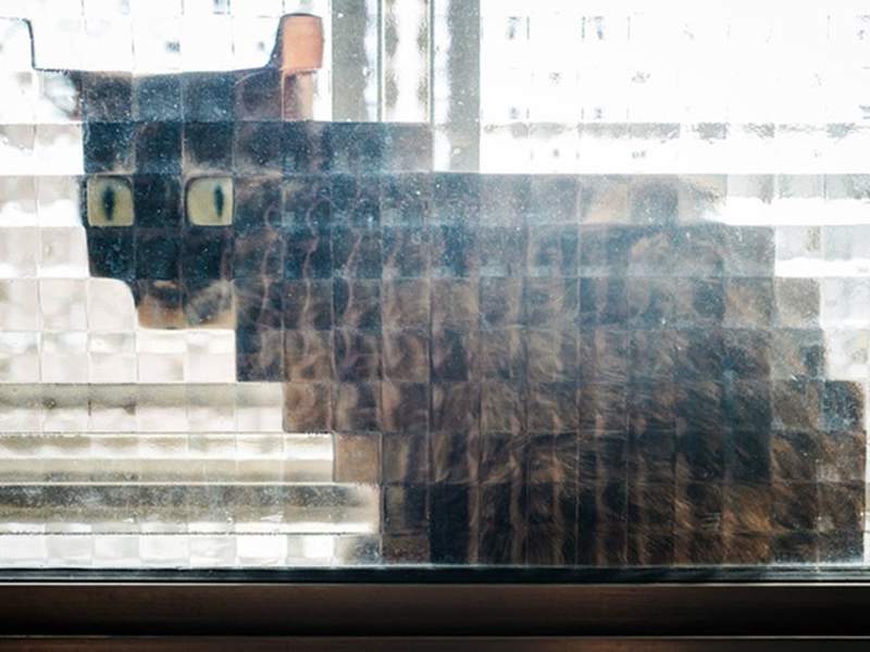 ▼讓貓咪待在方格玻璃後面,牠們瞬間就能點陣化,變成8位元版本。怪不得大家都說這是「馬賽克貓咪」,不用PS就有特效般的感覺。