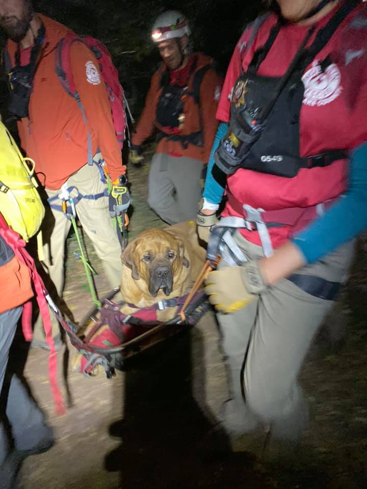 陪主人爬山...86kg巨汪到山頂走不動了 救援隊出動「牠乖趴擔架」:謝謝叔叔抬我下山~