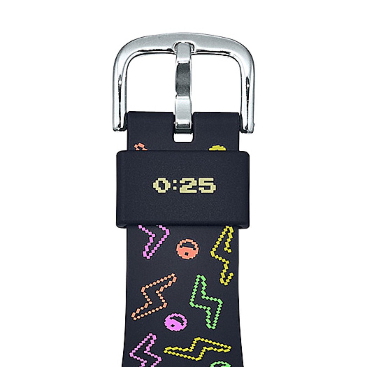 ▼錶帶圖案也非常搶眼,佈滿繽紛的像素閃電與精靈球!固定環上的「0:25」字樣代表25週年與第25隻寶可夢-皮卡丘。