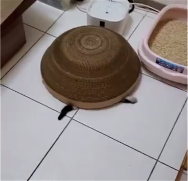 ▼盆子先是緩緩移動,接著速度加快,這下就露出「馬腳」了,裡面伸出了一條尾巴,吼!原來是喵星人藏在下面啊!隨著盆子的移動,尾巴一下縮進去,一下又露出來,看來這位「貓仙」演技還不夠成熟啊~