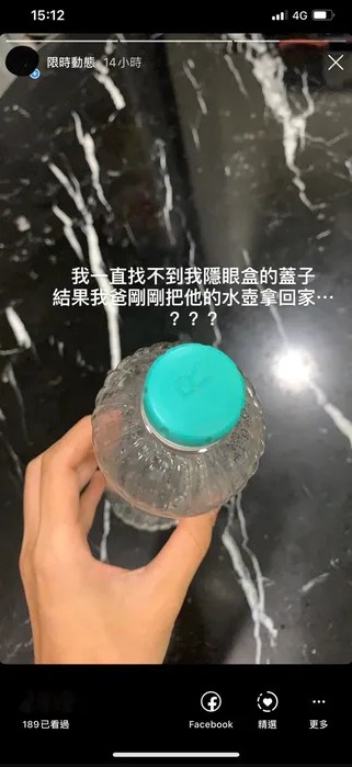 ▼日前有網友在 Dcard 發文表示,自己某天晚上脫下隱形眼鏡時,卻發現盒蓋不見了,而且翻了很久都找不到,她只好先用以前的隱形眼鏡盒。