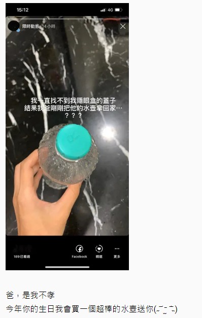 許多網友看完之後紛紛留言表示:「爸爸太好笑了」、「爸爸:今天的水好像鹹鹹的?」、「你只好拿瓶蓋來鎖隱形眼鏡盒了」、「太ㄎㄧㄤ了吧哈哈哈!」看來原po想要盡孝的話,也只能夠買一個好一點的水壺給老爸了!