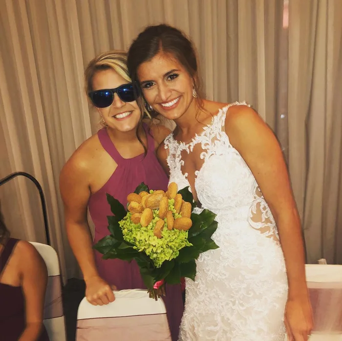 網友也盛讚說:「這是史上最棒的伴娘!」這對新人不僅在婚禮過程中完全不怕餓肚子,相信這束雞塊捧花肯定會記在他們的人生中!