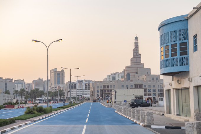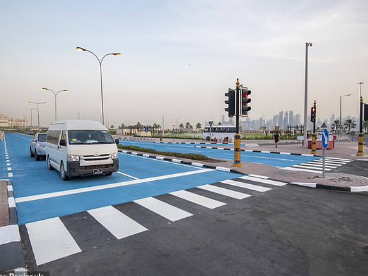 ▼而多哈的街道上,有許多道路也被油漆成藍色,據說這個方式可以降低約攝氏15度至20度!