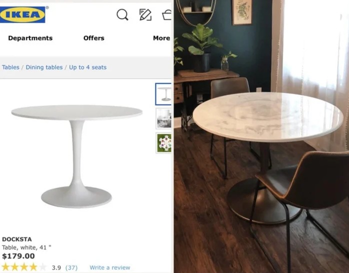 ▼普普通通的塑膠桌子,透過噴漆的方式將它變成了夢寐以求的大理石桌子,花費了180美元(約新台幣5500元)。
