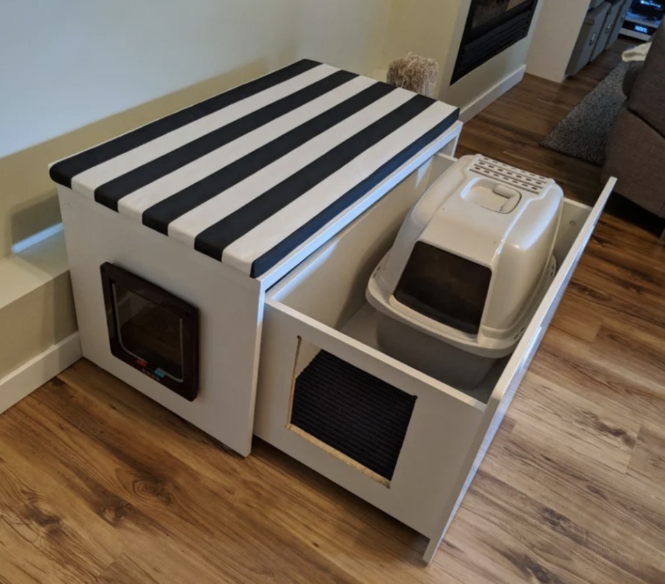 ▼小巧可愛的 IKEA 收納櫃,在旁邊鑽一個洞以後,變成了貓咪溫暖的小窩!