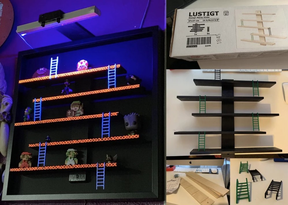 ▼普通的置物櫃,經過他的巧手改造後,變成了馬利歐遊戲的場景!