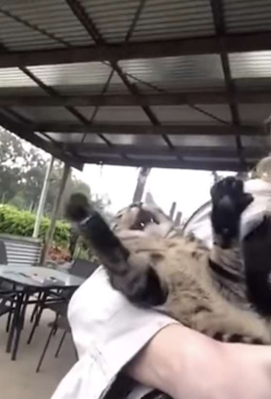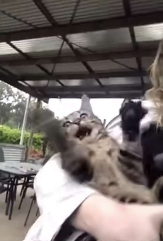 ▼Morgan被Betty逗笑,決定帶牠出去體驗一下。被主人抱在懷裡的Betty看到雨滴落在身上,覺得非常新奇。牠不停用手抓空氣,表情很困惑又驚訝。Morgan將牠帶回家後,牠還興奮抓門,想跑出去繼續淋雨。