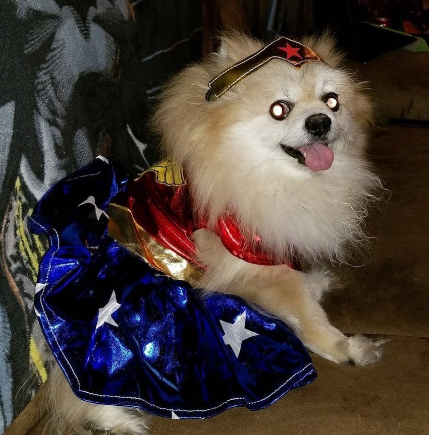 ▼2017年的萬聖節,安迪選擇了蘇菲(Sophie)這隻可愛的小博美作為他的「繆斯女神」!