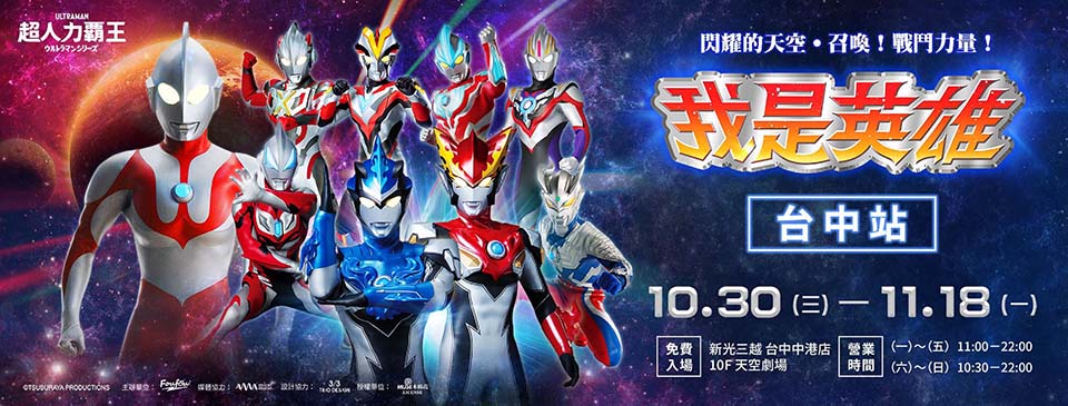 ▼超人力霸王《我是英雄》期間限定快閃店確定啟程巡迴到台中新光三越!全台巡迴第二站台中場超人力霸王快閃限定店,將於10月30日到11月18日,在台中新光三越中港店10F天空劇場登場。