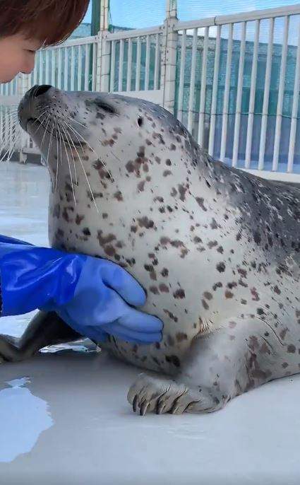 ▼不過最吸引網友的,還是飼育員在撫摸海豹時,牠臉上那舒服的模樣,真的令人看過之後留下深刻的印象!