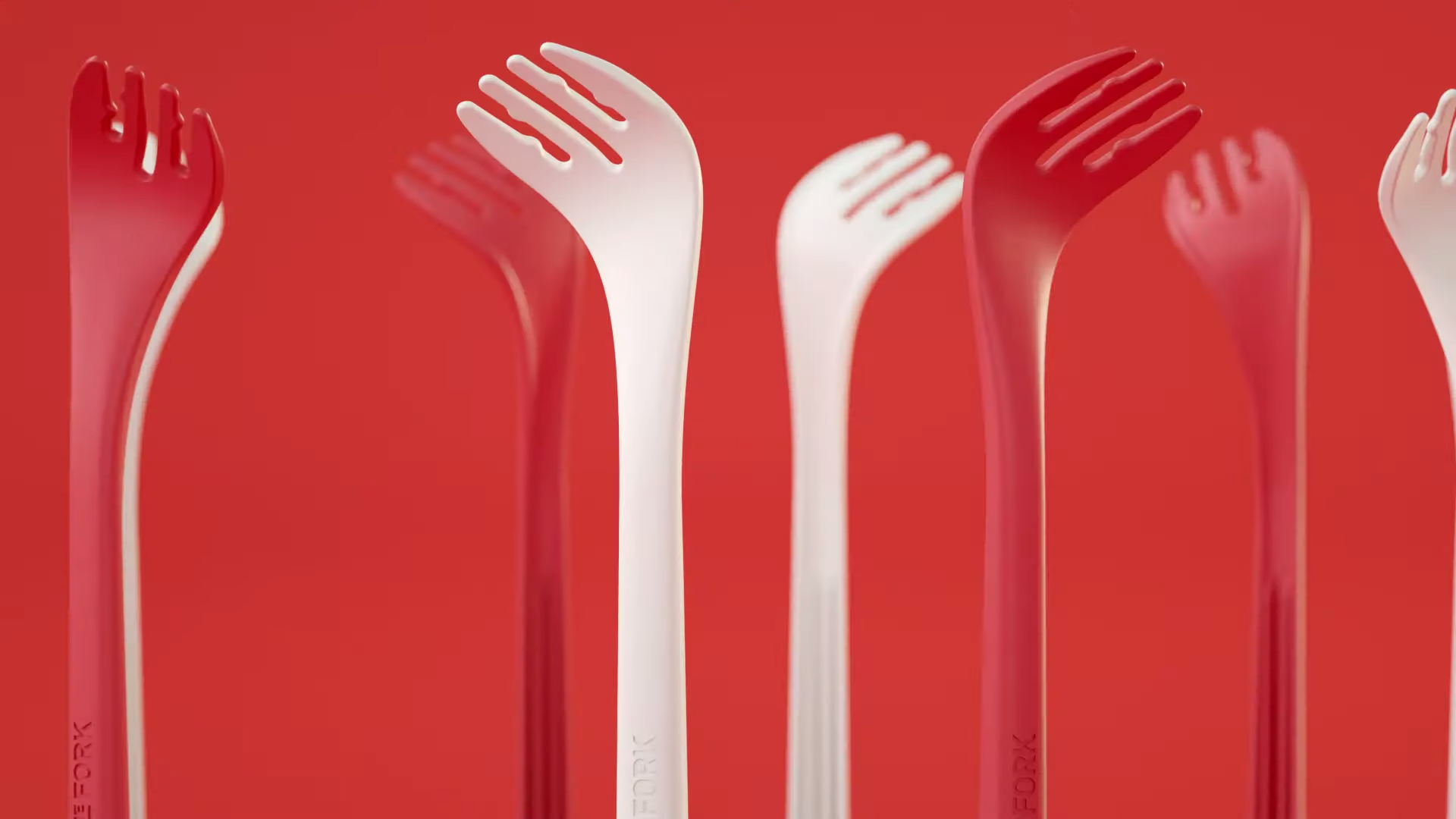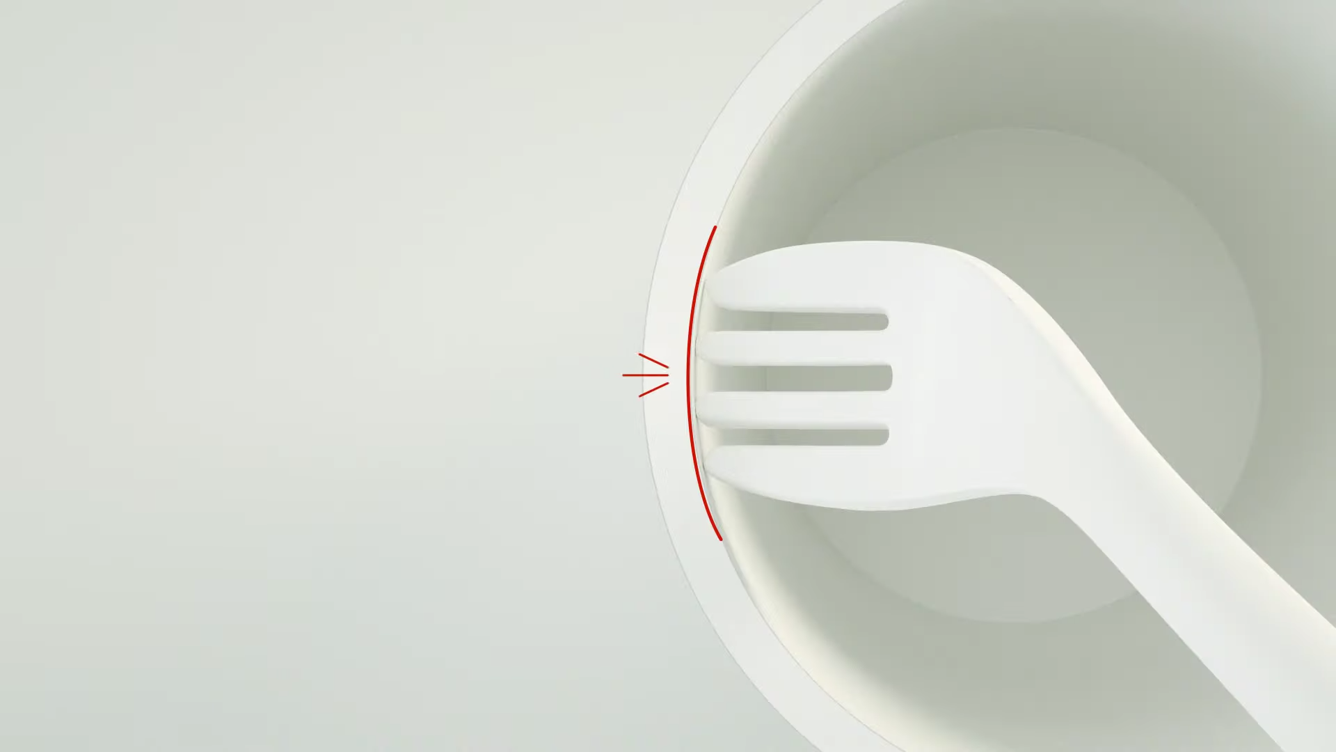 ▼叉尖上設計的突起,則是為了讓麵條可以順利掛在叉子上,不會脫落;而叉身上做出微微的弧度,可以拿來撈泡麵裡的小肉塊、蔬菜等料。