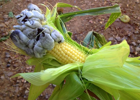 ▼雖然這樣的玉米不能吃,但是可以吃同樣有營養的「墨西哥松露」喔!根據科學家說法,黑穗菌其實含有豐富營養,有8種人體需要的胺基酸、膳食纖維等,也含有維他A、B1、B2、B6及C!
