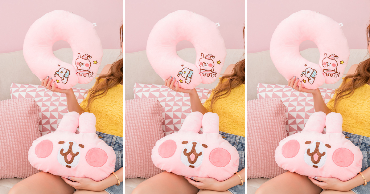 ▼紓壓兩用枕:圖樣採電繡設計,結合抱枕與頸枕二合一的功能,外出旅行的陪伴好夥伴,睡在粉紅兔兔的臉上也太愉悅了吧!>///<
