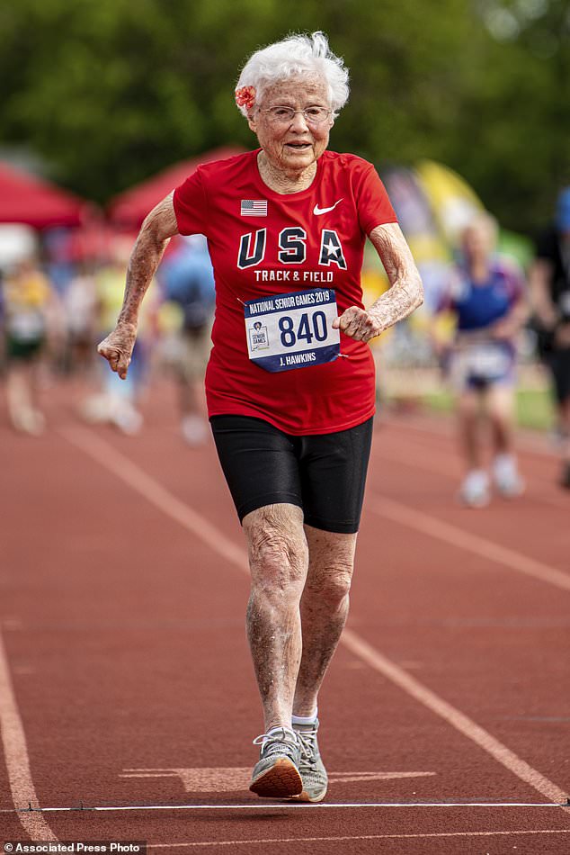 6月17日,Hawkins參加了在新墨西哥州阿爾伯克基(Albuquerque)舉行的「全美長者運動會」。這位外號「颶風」(Hurricane)的老奶奶奪下100公尺賽跑的金牌,還創造了百歲組50公尺賽世界紀錄。