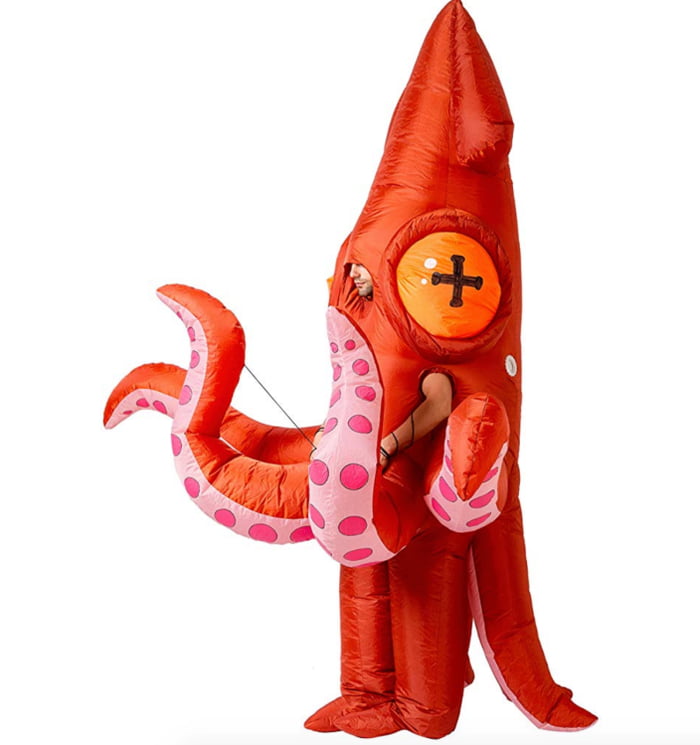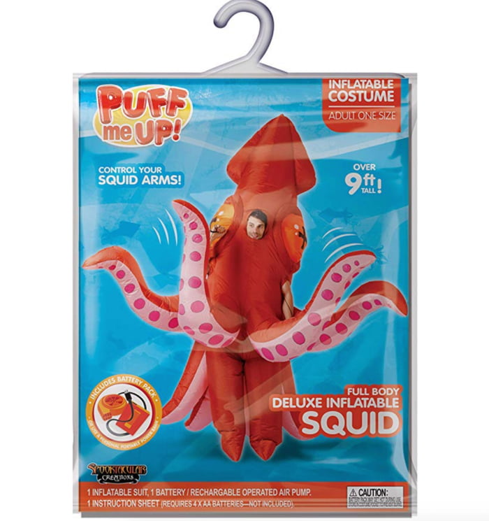 2019年10月30日萬聖節要來啦!大家想好今年要扮成什麼了嗎?如果沒有頭緒的話,下面這款「大魷魚充氣裝」是很不錯的選擇~穿上它變身2.75公尺高的巨型魷魚,你絕對能把派對上的所有人都比下去。