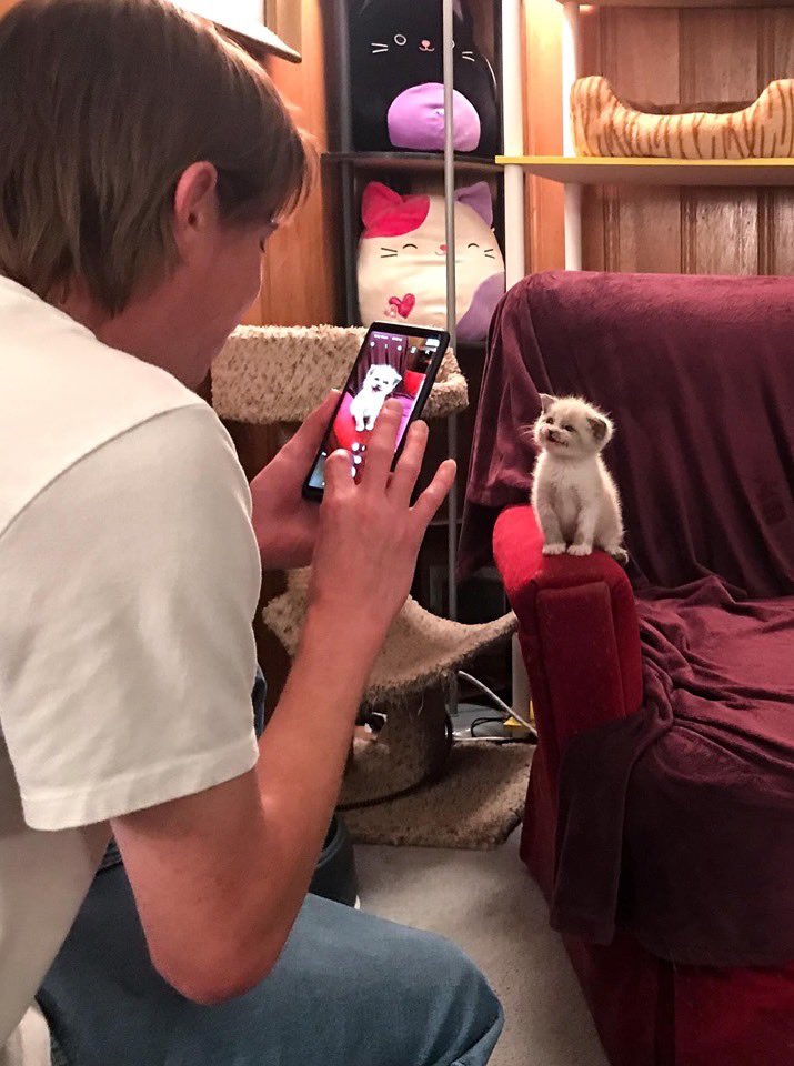 主人將這些照片po到社群網站上,大家都覺得這隻小奶喵超可愛。牠太乖巧了,拍照時也那麼聽話。看看自家討厭拍照、擁有「百分百躲避鏡頭」技能的毛孩,真的很羨慕那隻小奶喵的主人啊~