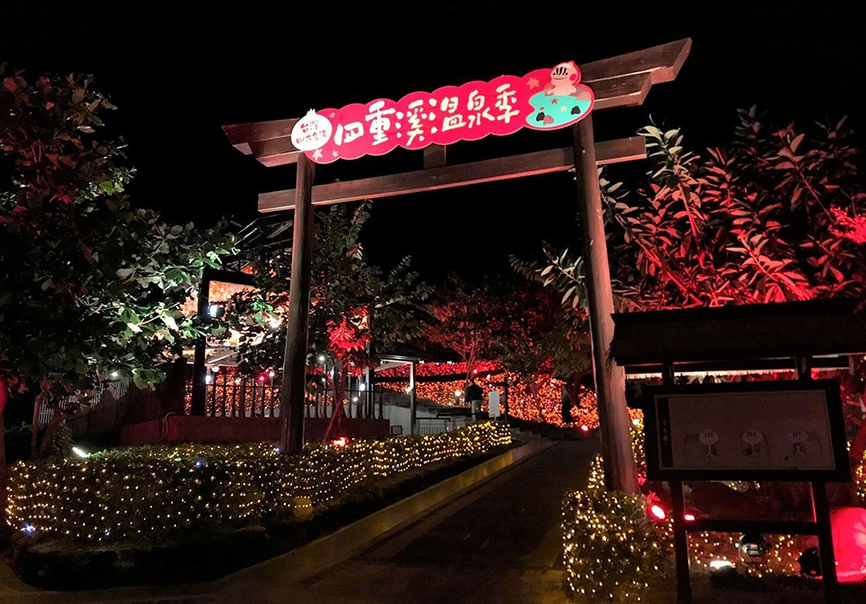 ▼四重溪溫泉是台灣知名的泡湯地點,也有「溫泉鄉」的美名,今年加入了楓葉元素,放眼望去全區內的紅色燈海超級吸睛,再加上日式風格的造景,不用出國也能體驗完美的泡湯旅程。