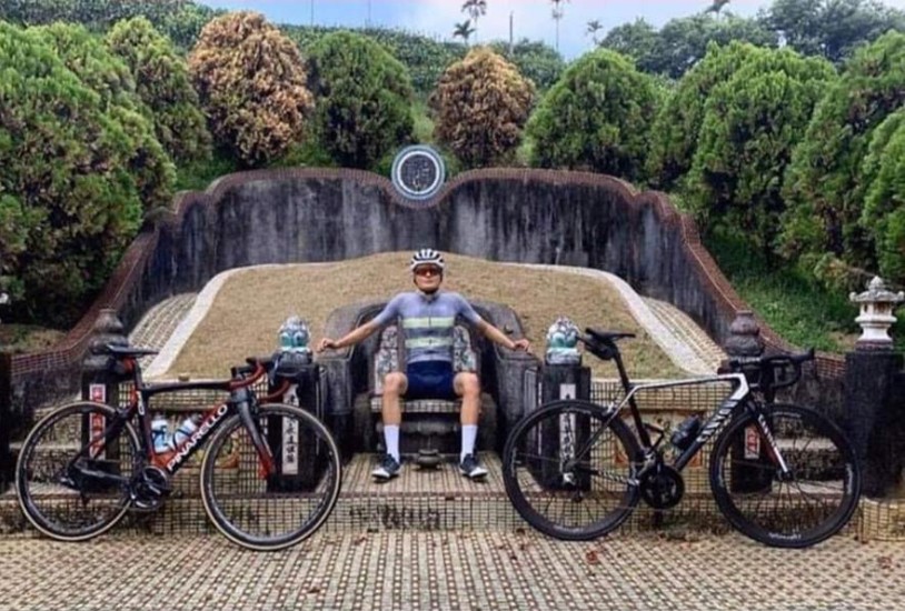 ▼從原po分享的照片可以看到,這名外國人身穿完整的自行車裝備,直接一屁股坐在墳墓前的供桌上,豪邁的張開雙腿、兩手放在墓碑的兩側,雙腳中間的香爐還插著香,兩旁還各停了一輛自行車當做裝飾,看來他似乎把這個墓當成了是拍照的景點!