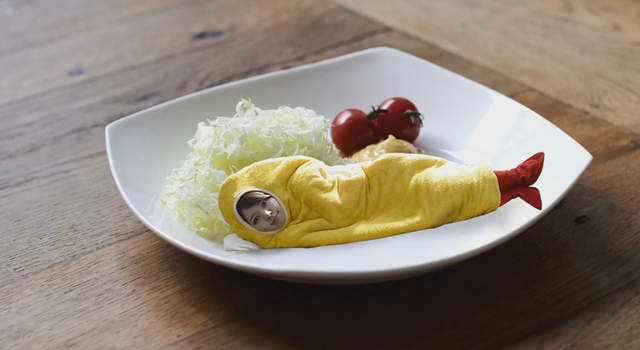 ▼這就是穿上之後的模樣,看起來是不是完全像是一隻巨大版的鮮蝦天婦羅呢?