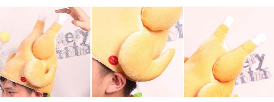 ▼這款全雞帽是以整隻雞為原型設計的,金黃的色澤看起來很可口,一口咬下去應該很美味吧?