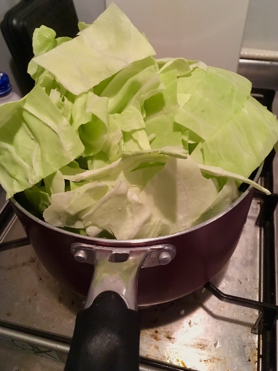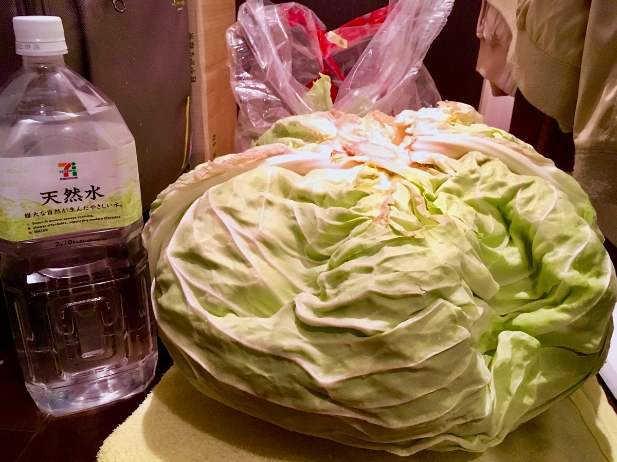 ▼她把這顆高麗菜帶回家後,立刻用它煮了一頓晚餐,但發現自己根本就吃不完!