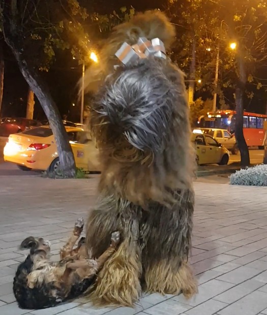 ▼原來今年萬聖節,有一位厄瓜多爾民眾為了宣傳最新的《Star Wars 9》電影,趁著萬聖節裝扮成了經典的毛絨絨生物「丘巴卡」的模樣。