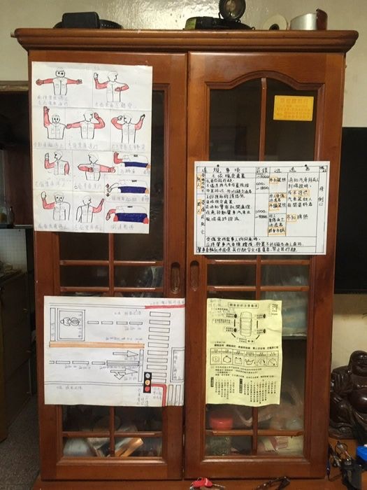 ▼原po的媽媽將這些圖文並茂的筆記貼在家中每個角落,讓阿公走到哪裡都可以看到這些基本觀念。