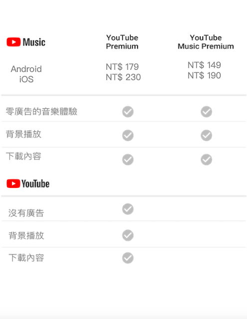 ▼付費的訂閱方案分別是「YouTube Music Premium」與「YouTube Premium」。