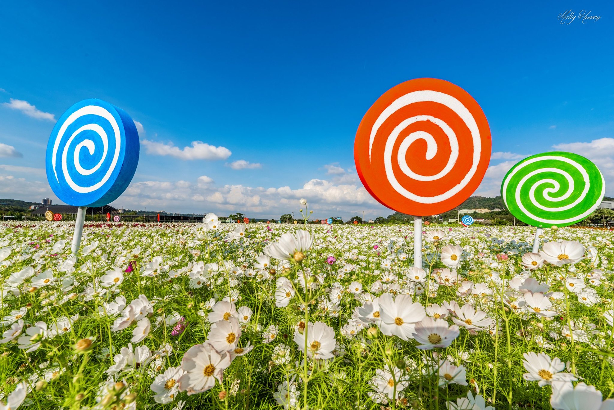 ▼主展區有許多造景超好拍,包括「花舞台」、「棒棒糖森林」、「入口意象拱門佈置」以及「吉祥物公仔設計」,童趣的棒棒糖搭配繽紛的花海,彷彿來到夢幻童話王國裡!