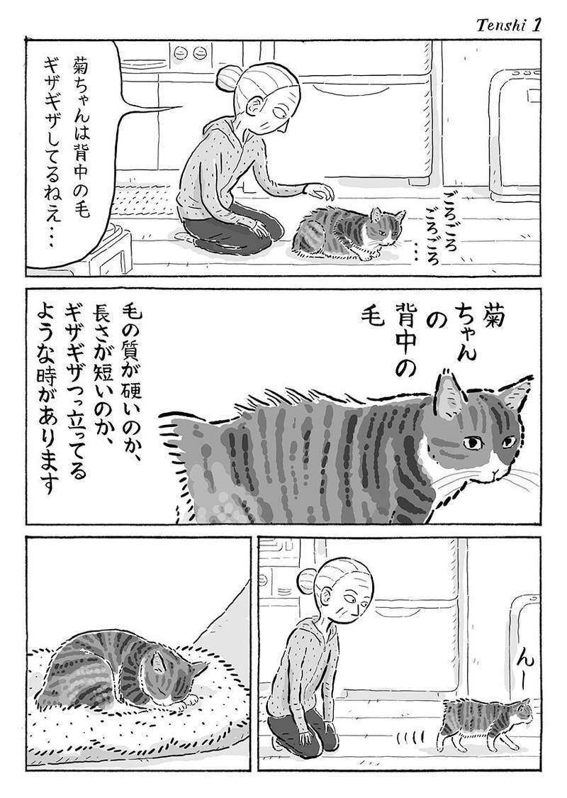 ▼這名網友在推特中表示,自己家中的貓咪「小菊」不知道是否毛質比較硬,或者毛髮較短,背部的毛髮經常會站起來,而且呈現「鋸齒狀」。
