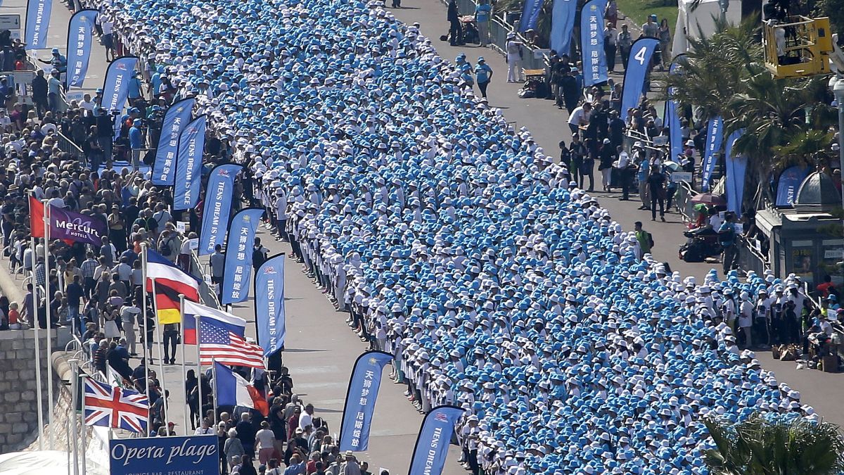 ▼他們還選了一天,全部穿上藍色、白色的服裝,聚集在尼斯蔚藍海岸的岸邊,用人擺出了「天獅集團的夢想就在尼斯蔚藍海岸」的字眼,創下了金氏世界紀錄中最大規模人體排字的記錄。