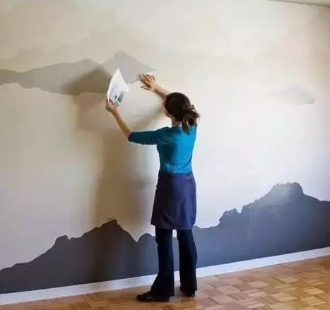 ▼刷過第一層後,以設計好的圖形和色彩作為樣本,用鉛筆輕輕在牆面起稿。