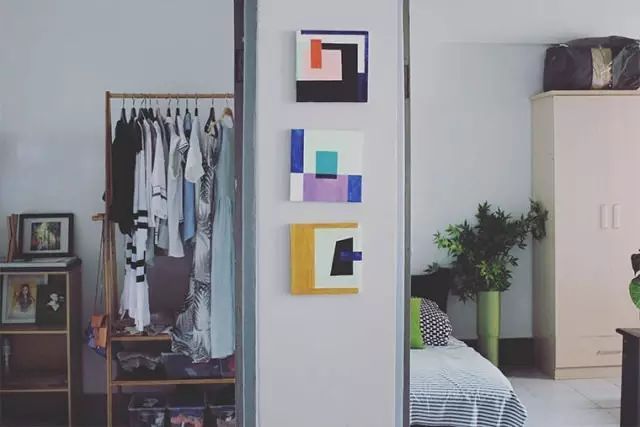 ▼牆壁上有一組色彩構成畫,讓整個空間變得活潑。