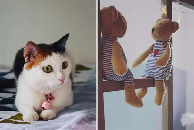 ▼她們養了一隻叫「妙妙」的貓咪,妙妙是一隻愛吃草的喵公主,家裡的綠植幾乎都被她啃過。佈置好所有空間後,牠果斷選擇了這個清新可愛的房間,看來貓咪也有少女心呢。
