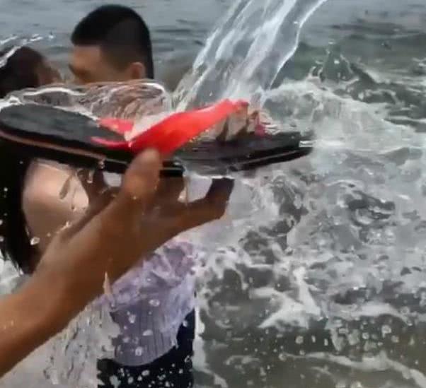 ▼攝影師不僅拿著拖鞋在新娘面前晃蕩,還讓助理往拖鞋上倒水。這樣真的能拍出漂亮的照片嗎?