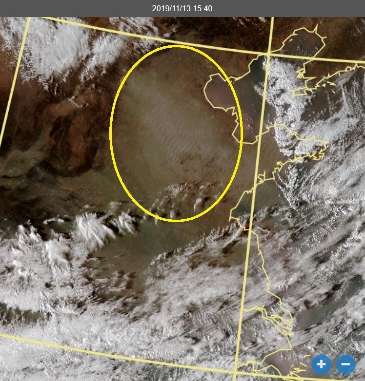 2019年11月14日隨著天氣漸漸轉冷,東北風增強狹帶著中國沙塵一路來台,從10月底開始空氣品質明顯惡化,從北部到南部無一幸免。13日中央氣象局副局長鄭明典預告,於14日將有新一波來自中國的沙塵漂至台灣上空,WeatherRisk為此製作出動畫預警。