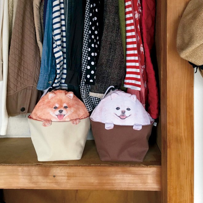 ▼而博美造型的置物籃比其他款式再小一點,長度和寬度微16公分、高度則是25公分,而這款還有束口袋的功能,很適合收納一些小東西!