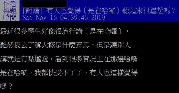 ▼最近在許多網路論壇上,都有網友紛紛針對「是在哈囉」這個詞彙進行了討論,許多人都表示一開始聽到都一頭霧水,可是在知道這個詞彙的意思之後,會讓人有一股說不出的尷尬感!