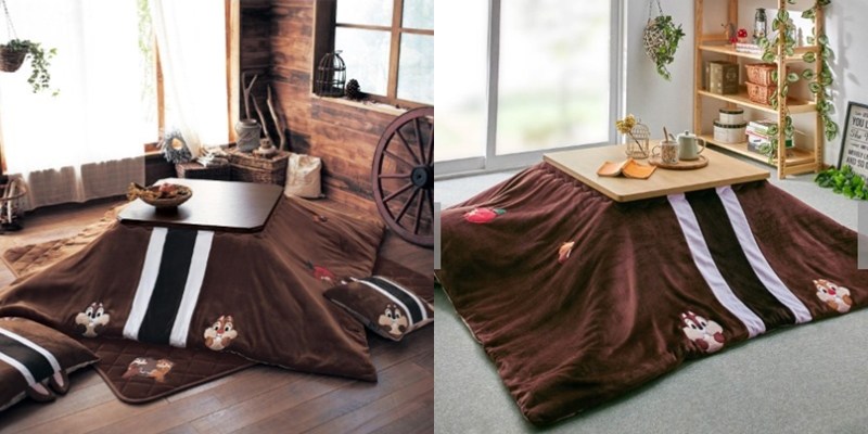 ▼「奇奇蒂蒂款暖暖桌」毛毯可以正反面交替使用,一面是深咖啡色的奇奇,另一面是淺棕色的蒂蒂,每次看到日本動畫裡,一家人一起窩在暖桌周圍,一起吃早餐、看電視,放假就是要這麼慵懶才行呀~