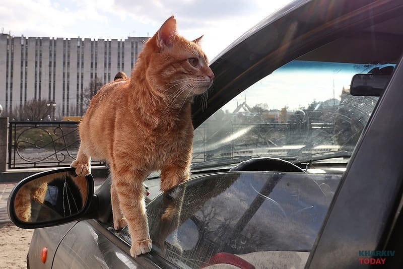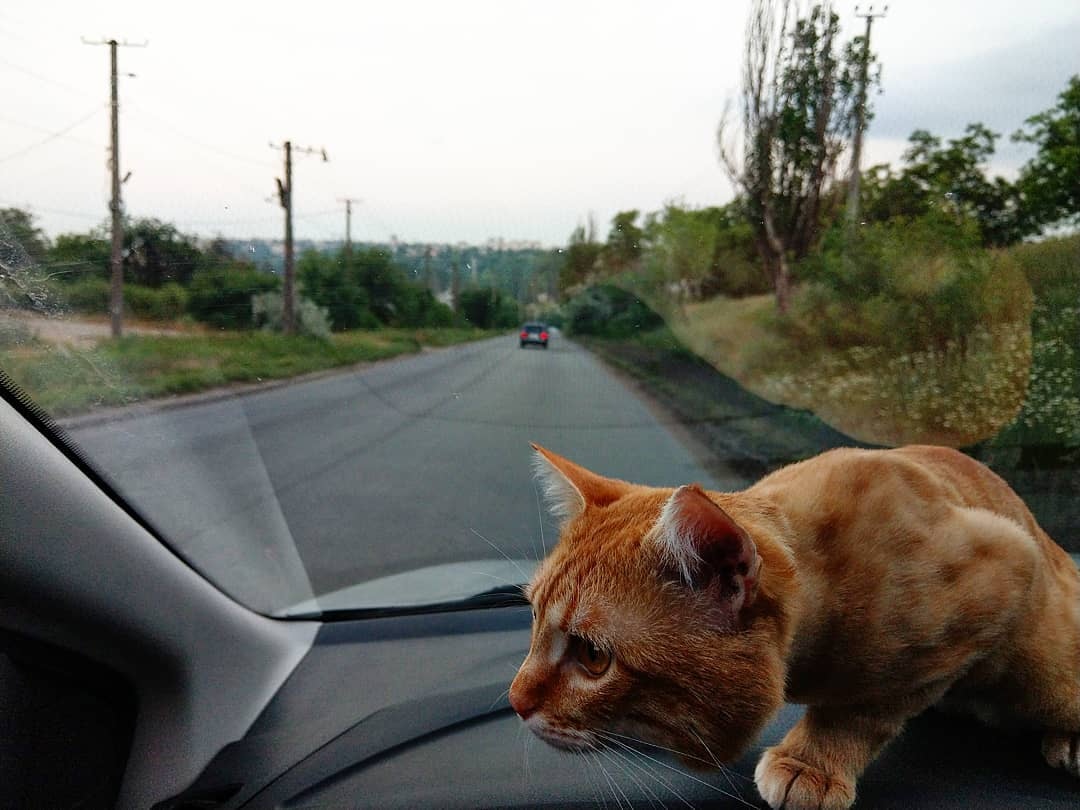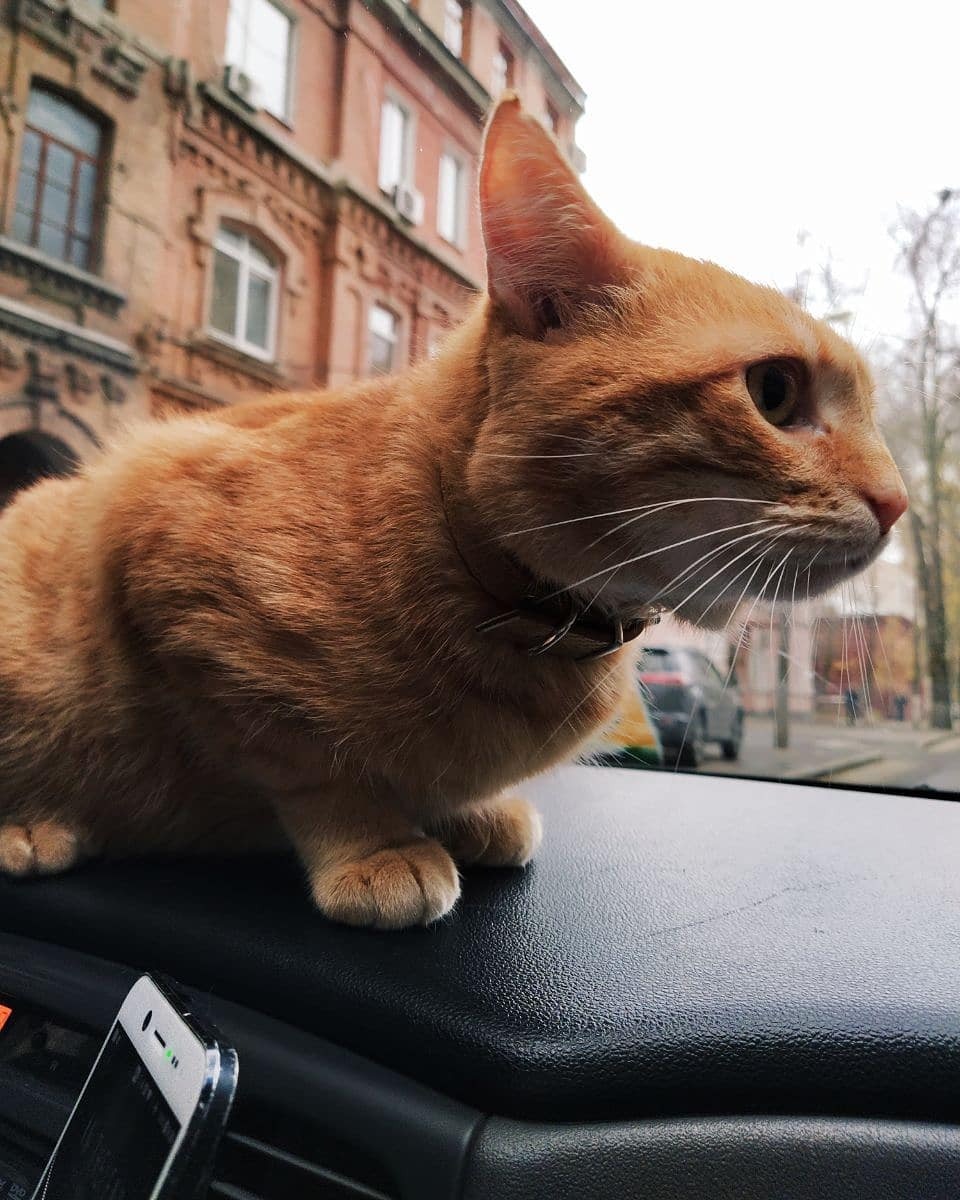 ▼茶茶非常可愛,也很開朗。牠喜歡乘車的感覺,有時候Oleksandr開得比較慢,牠還會從窗戶跑出去,站在引擎蓋上兜風。