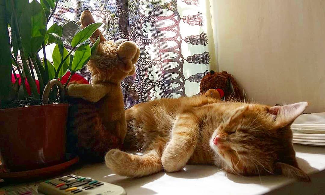 ▼有一次他跟女友去修車的時候,一隻橘貓自己跑過來求收養。Oleksandr覺得跟這隻貓咪很有緣,就收編牠成為自己的夥伴,並給牠取名為「茶茶」(Tea)。