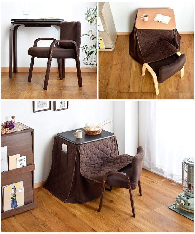 ▼天氣變暖之後將被子收起來,就變成了普通的桌椅,一年四季都可以用。