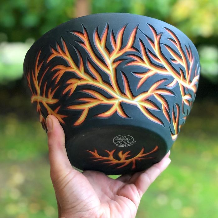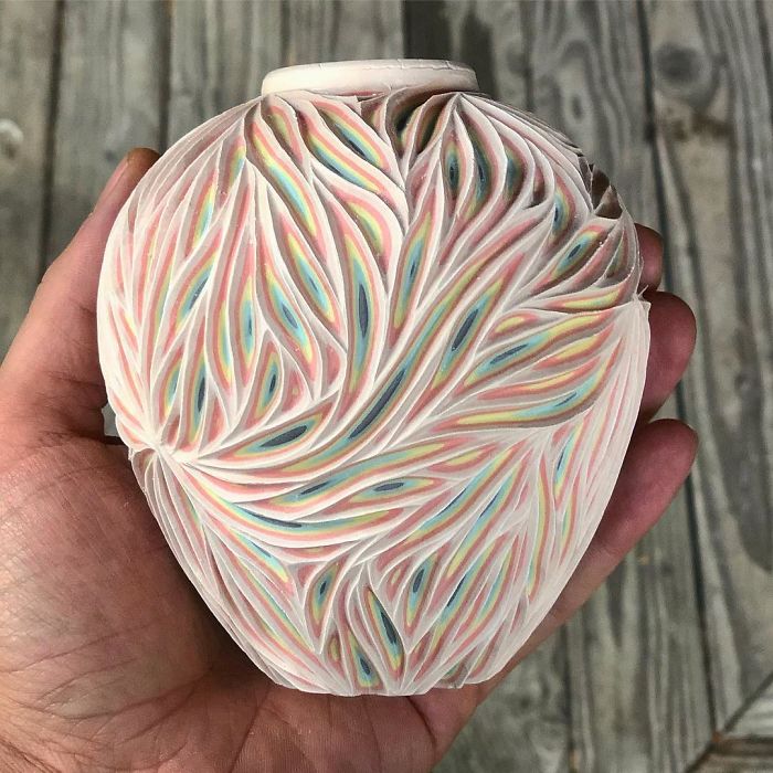 我們看到的陶器、瓷器,大多是根據事先設計好的圖案,在光滑的表面上描繪出來的。但華盛頓陶瓷藝術家Sean Forest Roberts卻琢磨出了特別的「多層次陶瓷」製法。他在製作過程中注入有色液體黏土,再用雕刻工具簡單加工,就能讓陶土綻放出繽紛的色彩。快來看看他的作品吧。