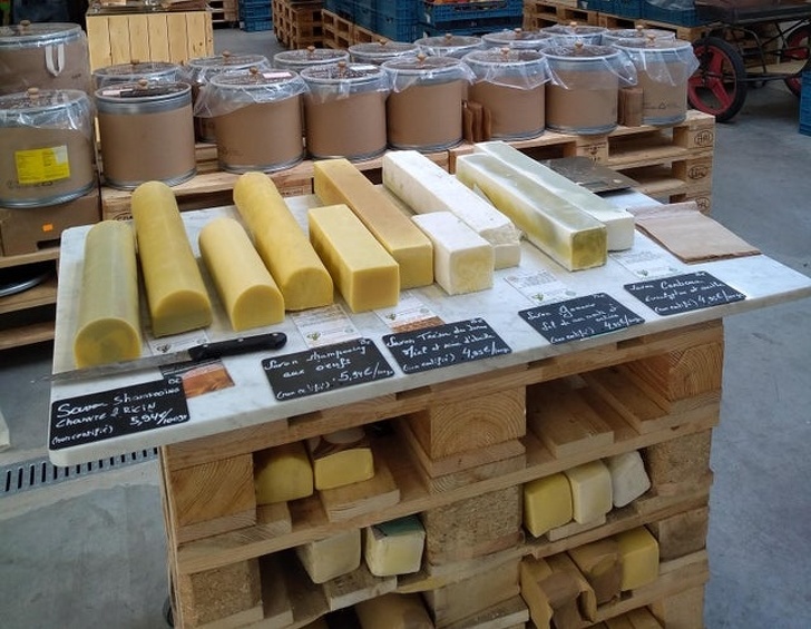 ▼在比利時,可以直接購買固體狀的肥皂和洗髮水,無需使用塑膠瓶子容器。