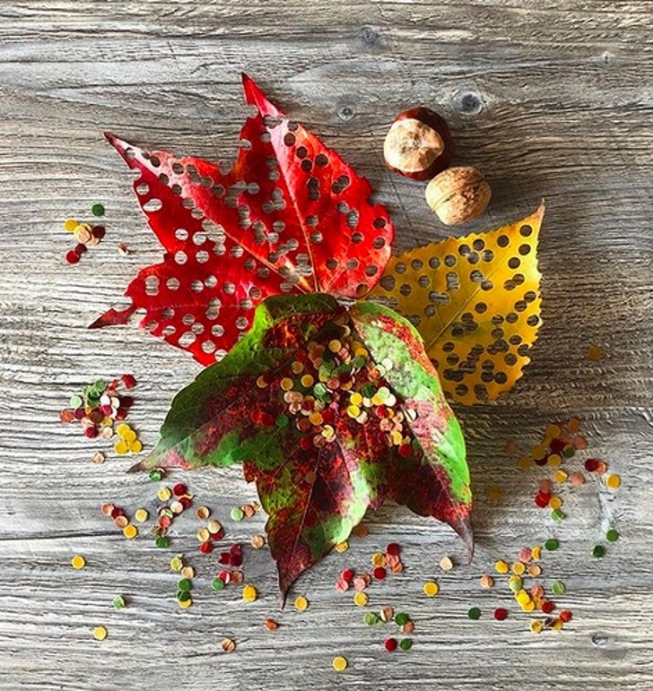 ▼想要彩色紙屑的話,不妨考慮使用葉子來製作!