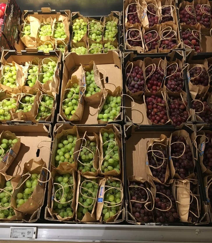 ▼這家超市使用紙袋來包裝葡萄。