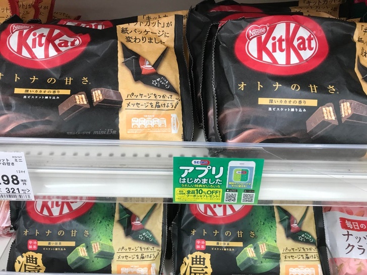 ▼日本 Kitkat 的包裝已經從塑膠袋改成了可以分解的紙質包裝。